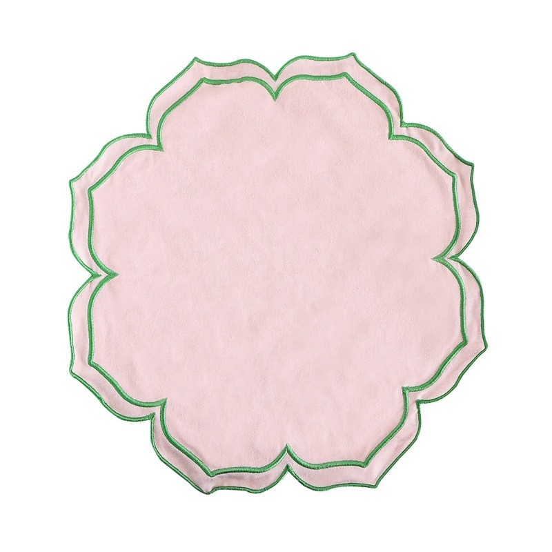 Prostirea din bumbac stilată în formă florală aduce delicatețe și eleganță în orice interior. Datorită dimensiunii 40,6 x 40,6 cm, oferă suficient spațiu pentru farfurie, tacâmuri și pahar, protejând în același timp eficient suprafața mesei de zgârieturi și murdărie. Prostirea este fabricată din 100% bumbac, care este natural moale, respirabil și plăcut la atingere. Marginea decorativă arcuită subliniază forma florală și conferă întregii mese un aspect modern și romantic în același timp.