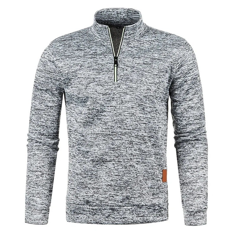 Pulover bărbaresc cu mânecă lungă și guler înalt cu fermoar pe jumătate Pulover din poliester într-o singură culoare Elegant și confortabil pulover modern în mai multe culori