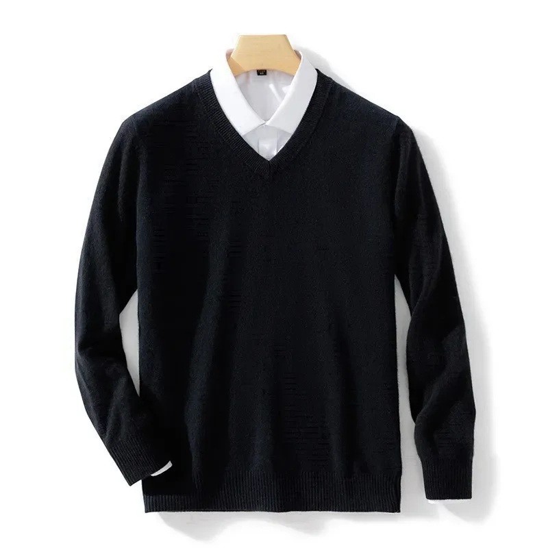 Pulover bărbați cu mânecă lungă și decolteu în V Pulover elegant tricotat într-o singură culoare Lână și fibre elastice Modă de toamnă iarnă