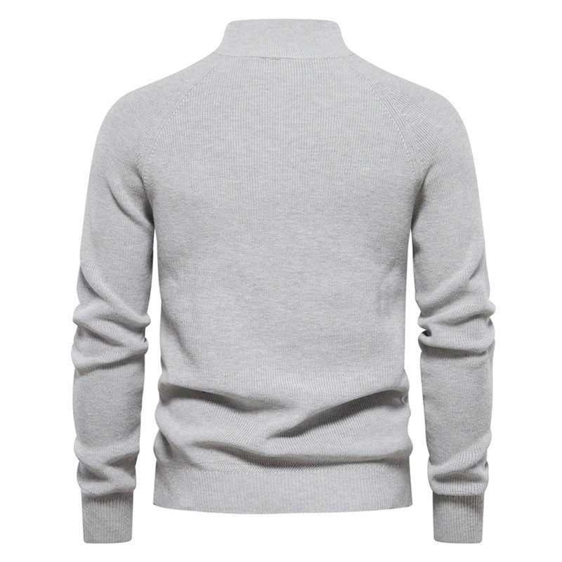 Pulover bărbați cu mânecă lungă și guler înalt Pulover elastic din bumbac cu fermoar la jumătate Pulover modern uni în mai multe culori