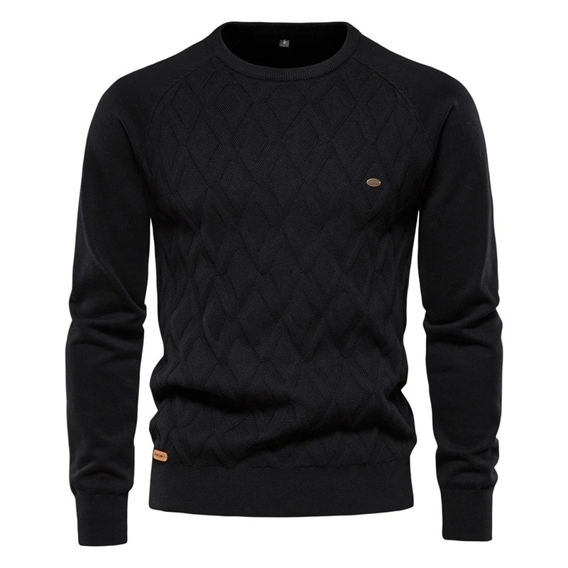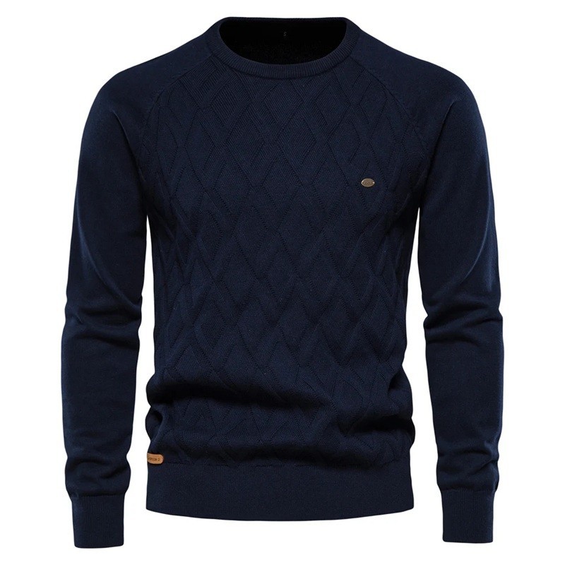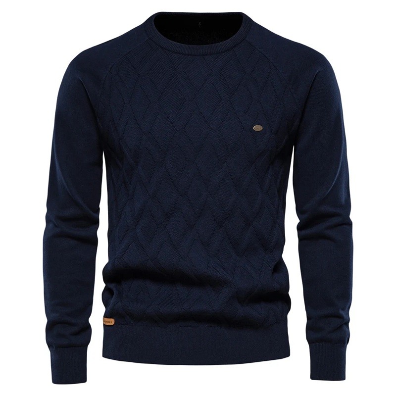 Pulover bărbați din bumbac cu mânecă lungă și decolteu rotund Pulover tricotat uni Modă elegantă de timp liber Îmbrăcăminte de toamnă și iarnă