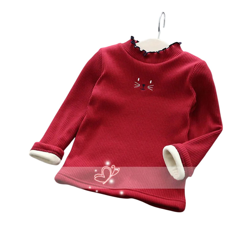 Pulover stilat pentru copii cu guler răsfrânt și motiv brodat. Fabricat din bumbac, acril și poliester, călduros și confortabil pentru sezonul rece. Descrierea completă