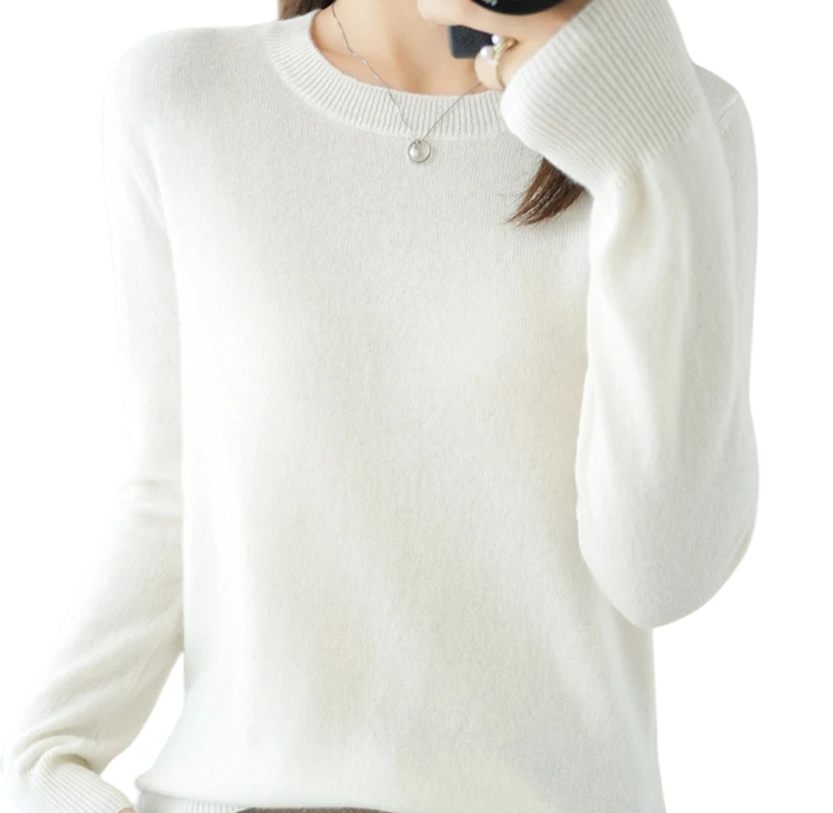 Pulover tricotat pentru femei din poliester și acril cu decolteu rotund Pulover elegant cu un singur ton și mâneci lungi Mărime universală pentru purtare zilnică