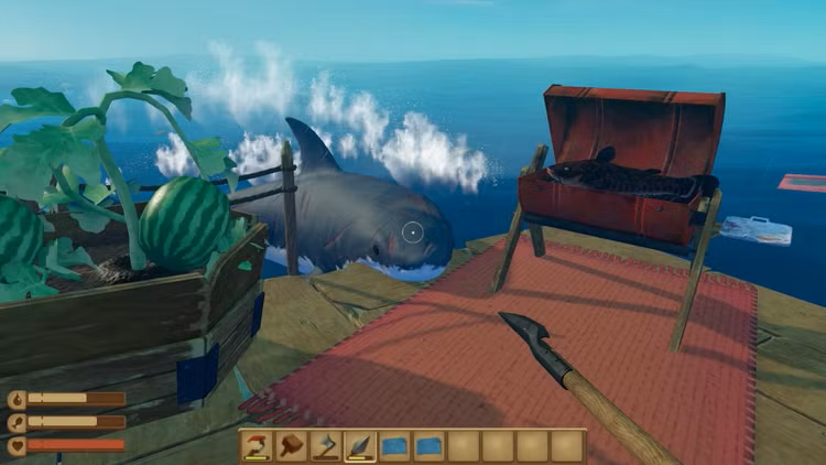 Raft vă va arunca pe dumneavoastră și pe prietenii dumneavoastră într-o aventură epică pe mare, având ca scop să rămâneți în viață, să colectați resurse și să construiți o casă plutitoare demnă de supraviețuire.