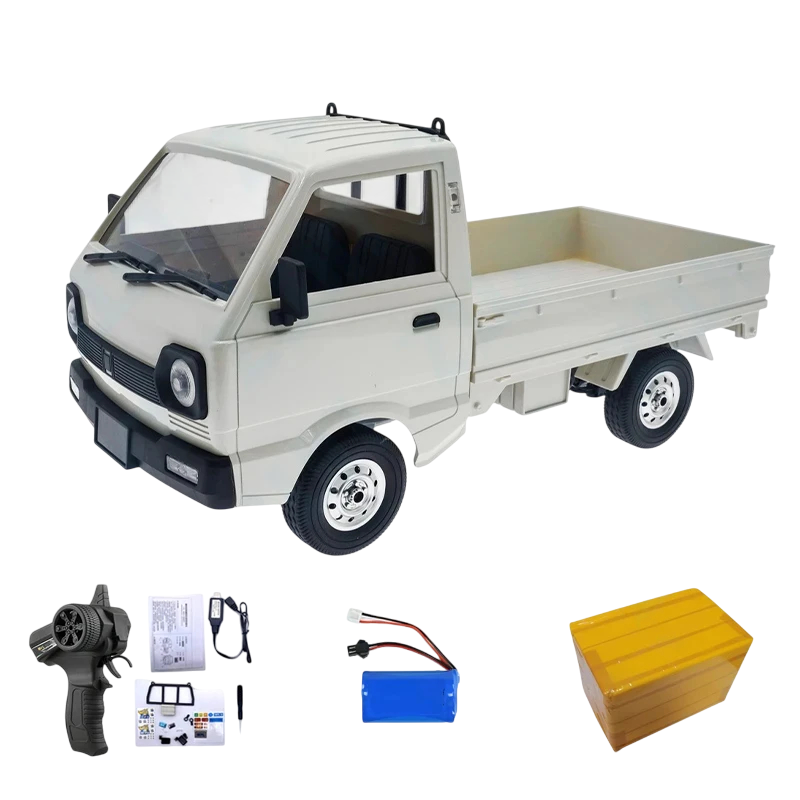 1× RC auto WPL D12, 1× controler la distanță, 1× baterie 7,4V 600mAh, 1× cablu de încărcare USB, 1× manual de utilizare