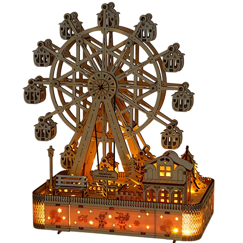 Această set de construcție 3D al roții rusești din lemn oferă o combinație distractivă de creație manuală, relaxare și estetică. Modelul, odată asamblat, creează o roată rusească realistă cu detalii fin lucrate și părți mobile funcționale. Datorită prelucrării precise a fiecărei piese, asamblarea este ușoară și nu necesită utilizarea de lipici. Modelul rezultat este o decoțiune mecanică impresionantă, potrivită pentru o poliță, birou sau vitrină.