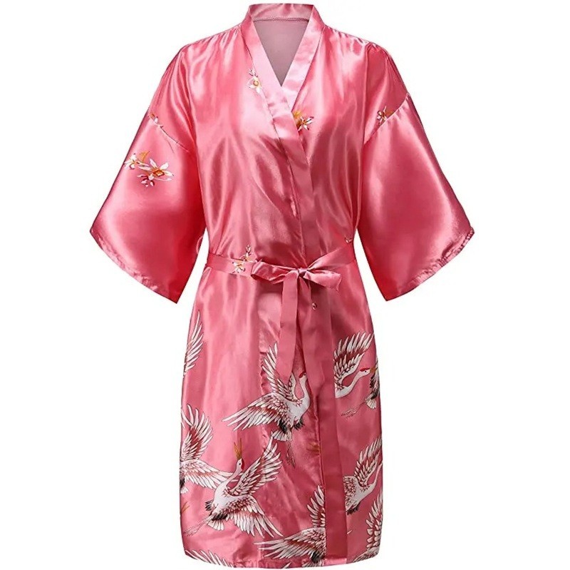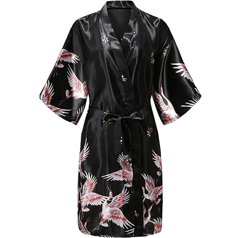 Rochie de baie cu motiv de păsări Rochie elegantă din 100% mătase cu legare în talie cu un șnur Material fin și fluid pentru confortul și relaxarea acasă