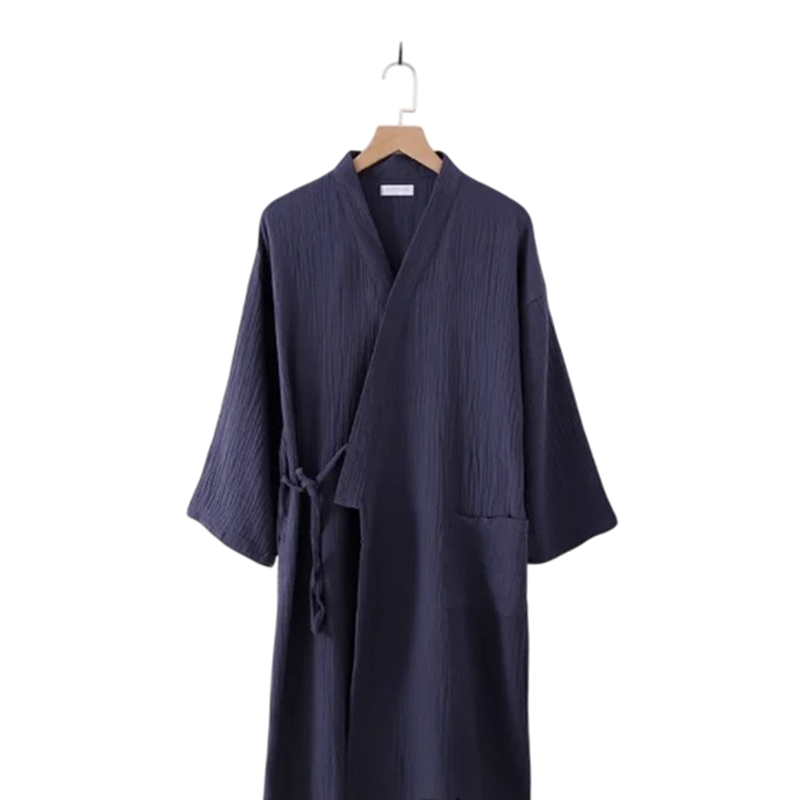 Rochia este ideală pentru trezirea de dimineață, relaxarea de seară, relaxarea în weekend sau ca accesoriu pentru îmbrăcămintea de acasă. Bumbacul este rezistent, ușor de întreținut și, datorită calității sale, își păstrează forma și confortul chiar și după utilizare îndelungată. Mânecile kimono susțin libertatea naturală de mișcare și conferă rochiei un aspect atemporal inspirat din estetica japoneză tradițională. Datorită construcției ușoare, rochia este potrivită și pentru călătorii, unde veți aprecia compacitatea și confortul său. Stilul minimalist o face o piesă versatilă potrivită pentru bărbați de toate vârstele.