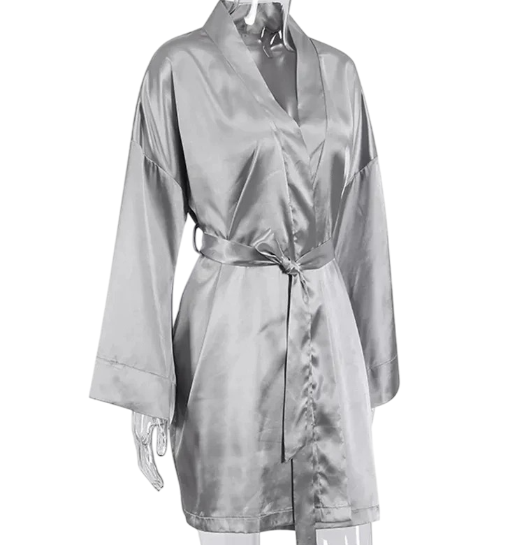 Rochie de casă ușoară din poliester și mătase cu legare în jurul taliei