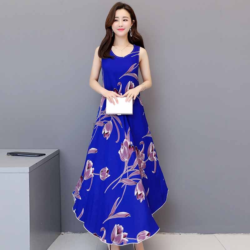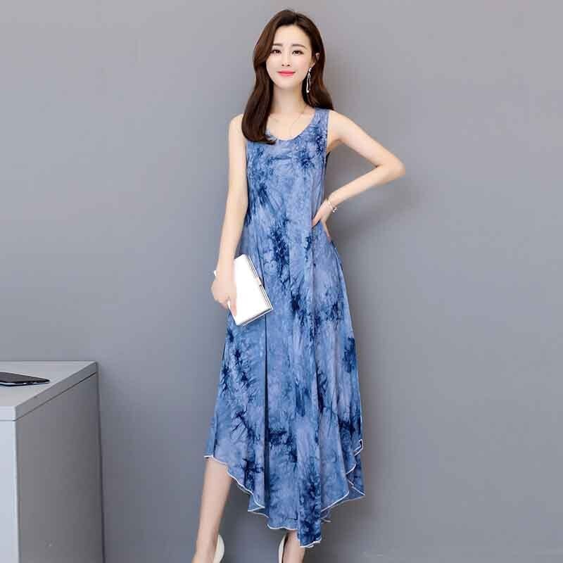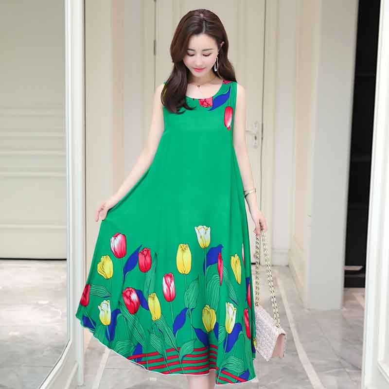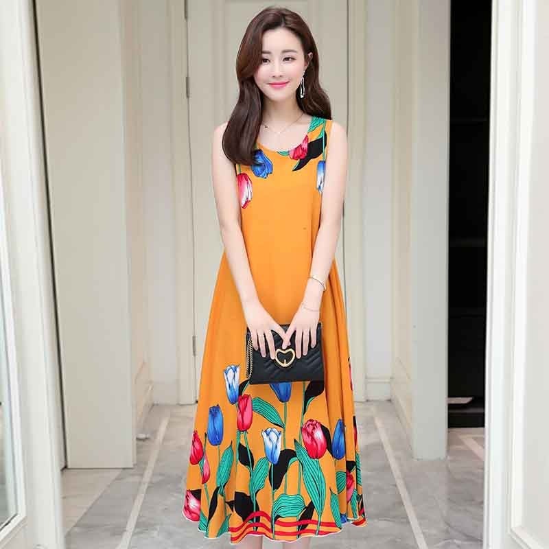 Rochie de vară confortabilă, fără mâneci, cu decolteu rotund.
