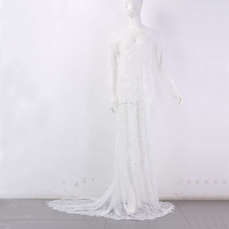 Decolteu elegant în V și siding lung.