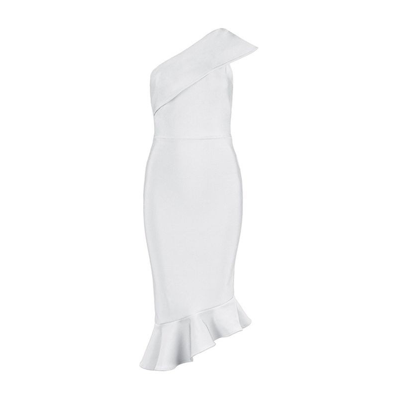 Arătați curbe grațioase într-o rochie netedă pe un singur umăr.