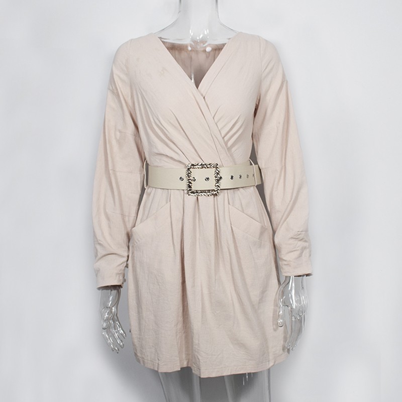 Mini rochie de damă cu mâneci lungi și umeri goi.