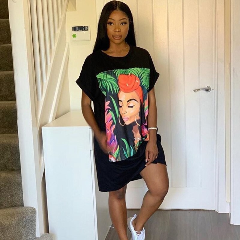 Rochie modernă de tricou cu mâneci scurte.