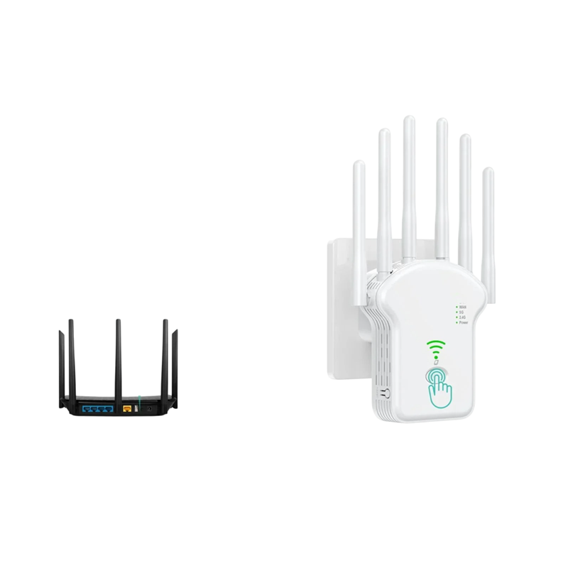 - Router WiFi și amplificator de semnal pentru extinderea acoperirii rețelei wireless