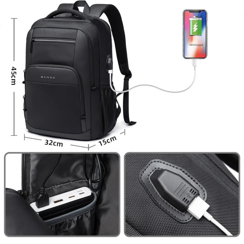 Rucsac de călătorie pentru laptop 45 × 32 × 15 cm Rucsac multifuncțional impermeabil cu port USB Mai multe buzunare Capacitate mare BANGE