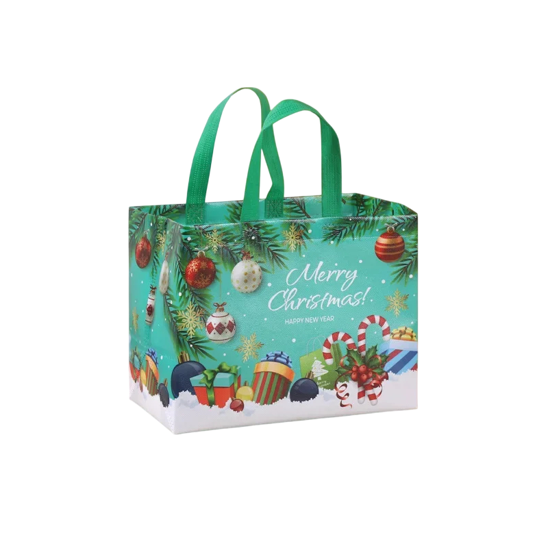 Sac de cadou verde de Crăciun Merry Christmas din material netesut Reutilizabil, sac ecologic pentru cadouri Ambalaj elegant pentru Crăciun