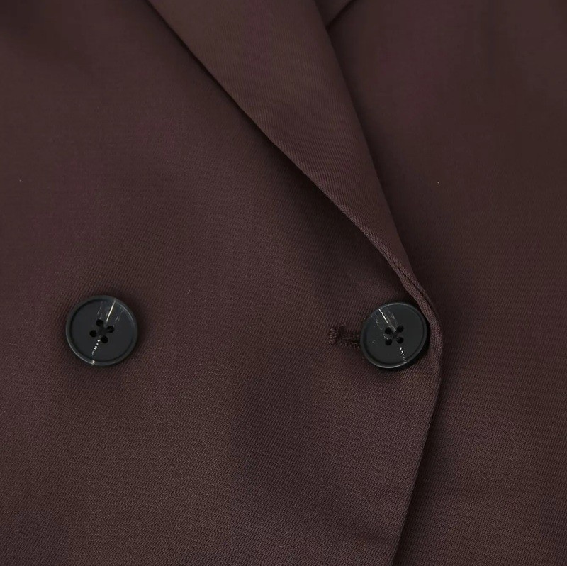 Saco elegant maro cu guler, buzunare și închidere cu nasturi. Piesă stilată din poliester de calitate, potrivită pentru toamnă și iarnă. Descrierea completă