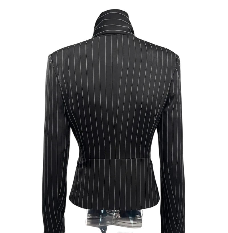 Acest sacou elegant pentru femei cu dungi subtile este alegerea ideală pentru femeile care doresc să combine eleganța cu confortul și stilul modern. Fabricat din poliester de înaltă calitate, este ușor, plăcut la atingere și ușor de întreținut. Gulerul clasic oferă un aspect formal, în timp ce modelul discret cu dungi adaugă interes și creează impresia unei siluete mai subțiri. Datorită designului său uni cu detalii subtile, se potrivește pentru diverse ocazii – la birou, la întâlniri de afaceri sau la evenimente sociale.