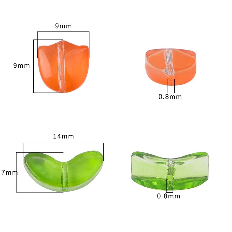 Sada de mărgele din sticlă cu model de lalea 9x9x0,8 mm floare și 7x14x0,8 mm frunză 20 buc Mărgele din sticlă realizate manual în culori amestecate aleator