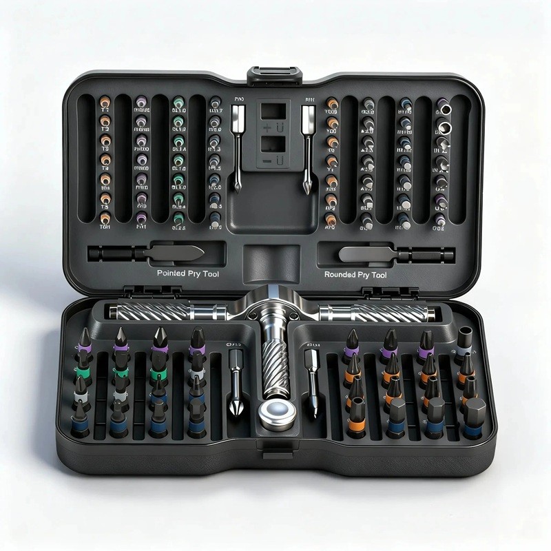 • O gamă largă de biți de diferite forme și dimensiuni pentru lucrul cu electronica, mobilierul, bicicletele și aparatele mici.
