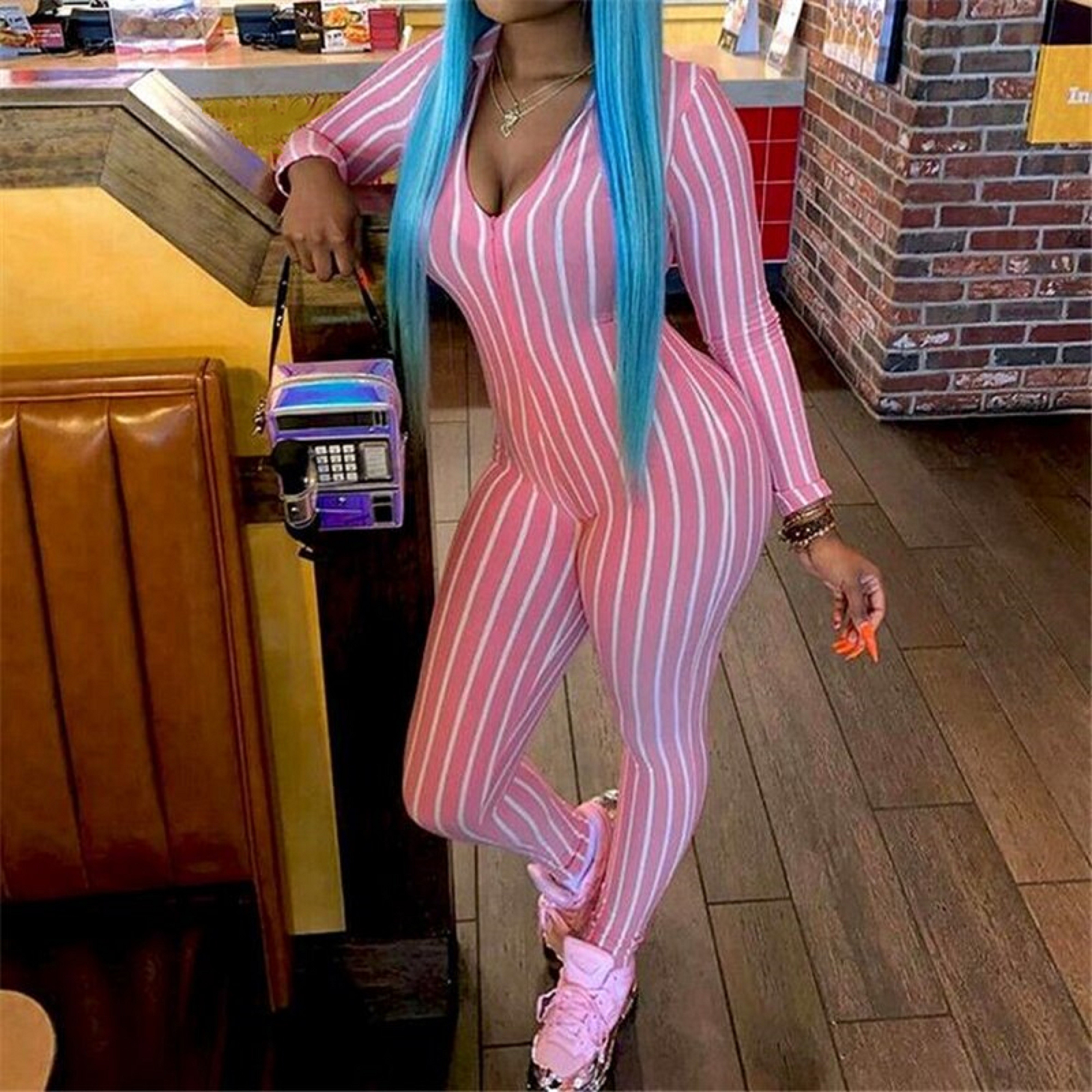 Salopetă cu dungi pentru femei A2067