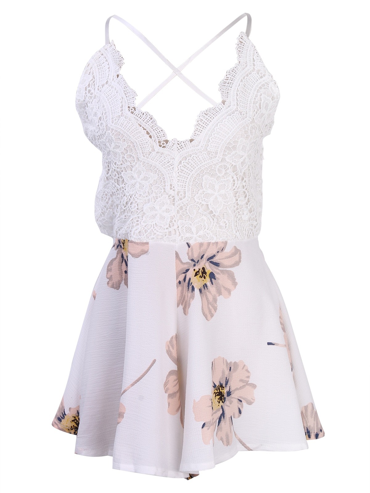 Dantelă romantică în partea de sus și curele încrucișate.