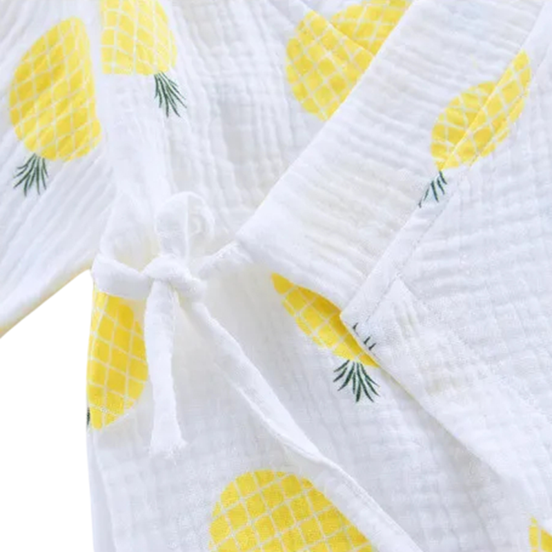 Salopetă din bumbac muselin pentru nou-născuți cu mânecă lungă și decolteu în V Salopetă unisex albă cu motiv de ananas și deschideri cu șnur
