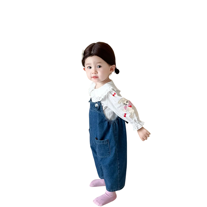 - Conținutul pachetului: 1× salopetă din denim pentru copii cu motiv de iepure