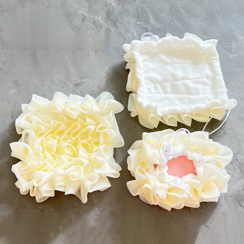 Săpuniera de baie 14 cm din lufa cu plasă cu buzunar pentru săpun, burete de baie din nylon, crem pentru duș și îngrijirea pielii