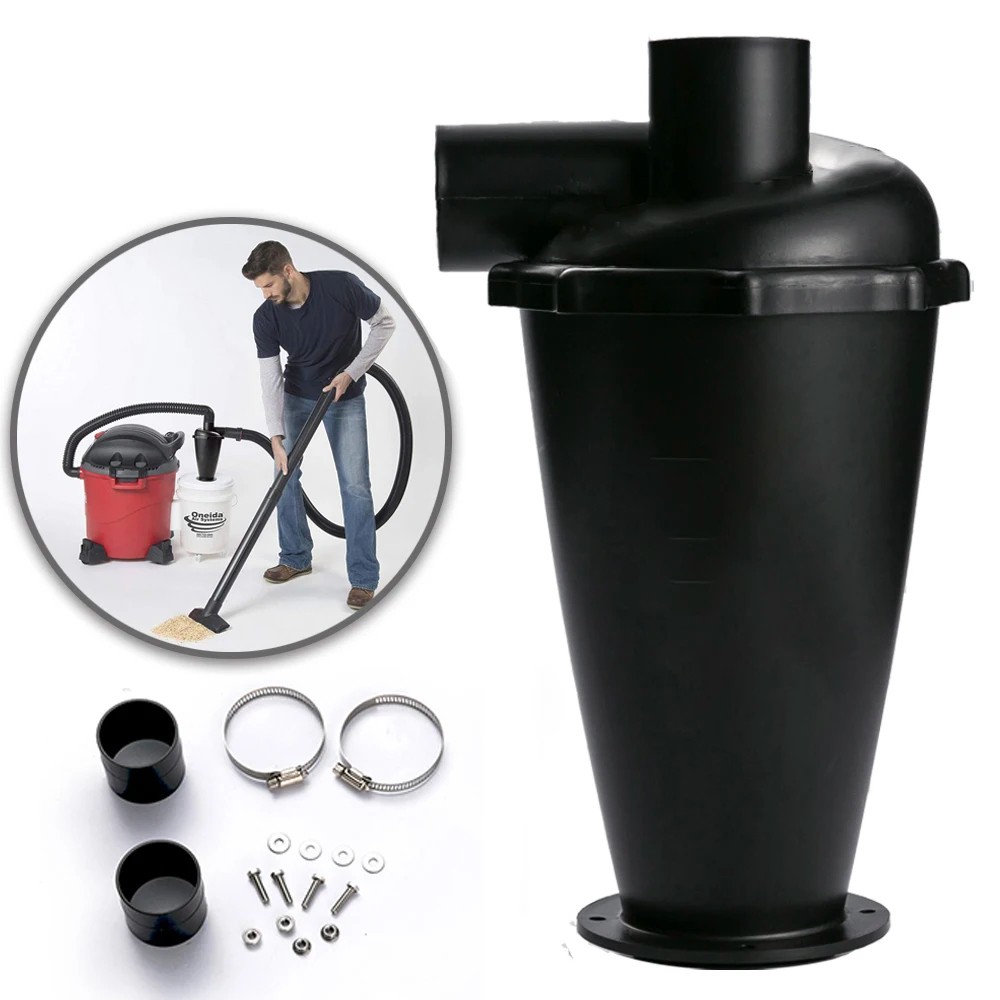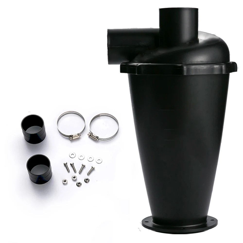 Separatorul ciclon de praf este un accesoriu practic pentru orice atelier de acasă sau profesional. Datorită formei aerodinamice și a curentului ciclon, acesta separă eficient particulele grosiere și fine, protejând astfel aspiratorul de înfundare rapidă. Separatorul creează un vârtej direcțional, care trage praful în recipientul de colectare înainte de a intra în aspirator, ceea ce întinde semnificativ durata de viață a filtrelor și menține o putere de aspirație stabilă. Datorită gâtului de intrare și ieșire cu diametrul de 50–56 mm, este compatibil cu majoritatea sistemelor de aspirare de acasă și industriale. Corpul separatorului este ușor, rezistent și se instalează ușor folosind orificiile de montaj de pe bază.