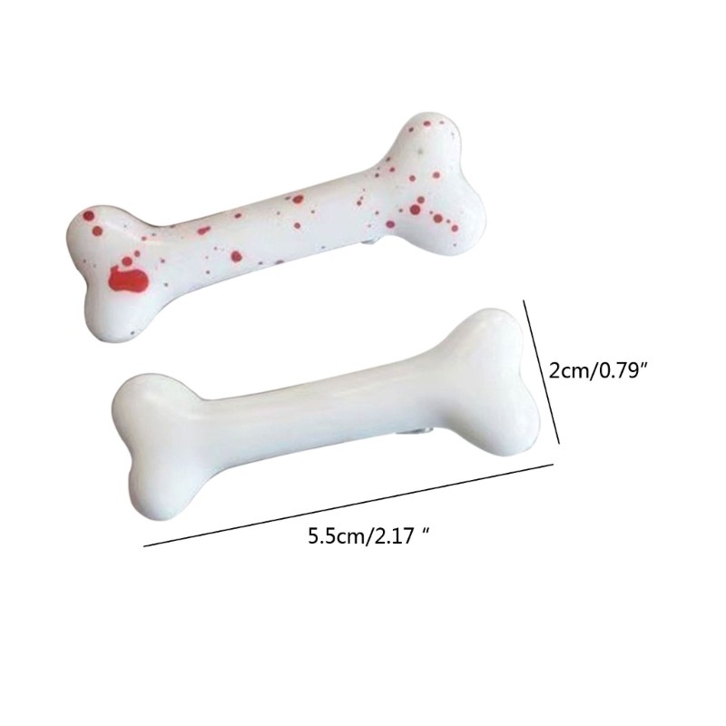 Set 2 bucăți agrafe de păr în formă de os 5,5 × 2 cm Plastic Alb sau cu imprimeu Punk accesoriu de păr