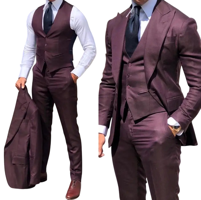 - Conținutul pachetului: 1× sacou, 1× vestă, 1× pantaloni