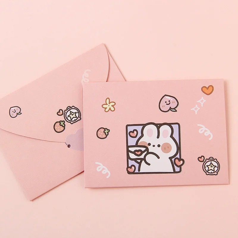 Pagina de start Pagina de start Casă Furnituri de birou Set de 10 bucăți de plicuri roz cu hârtie 9,6 × 7,2 cm cu motiv de iepuraș cu inimioare