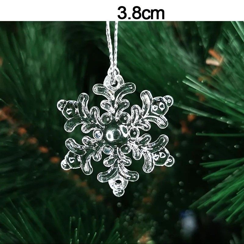 Set de 5 bucăți de ornamente de Crăciun din plastic transparent în formă de fulg de zăpadă 3,8 cm cu suspendare pe sfoară pentru bradul de Crăciun