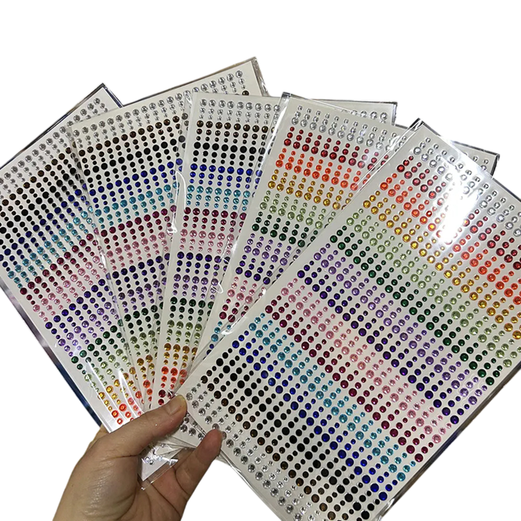 - Conținutul pachetului: 5 foi de pietre colorate autocolante în mix de dimensiuni