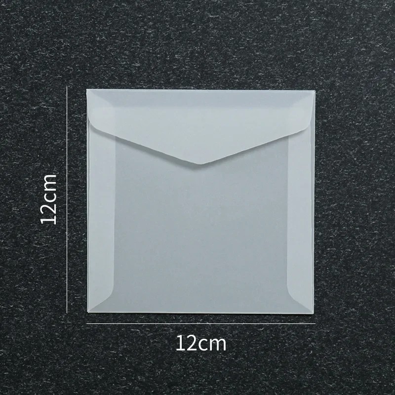 Set de 50 bucăți de plicuri transparente 12 x 12 cm din hârtie semi-transparentă cu clapetă autocolantă pentru felicitări și invitații