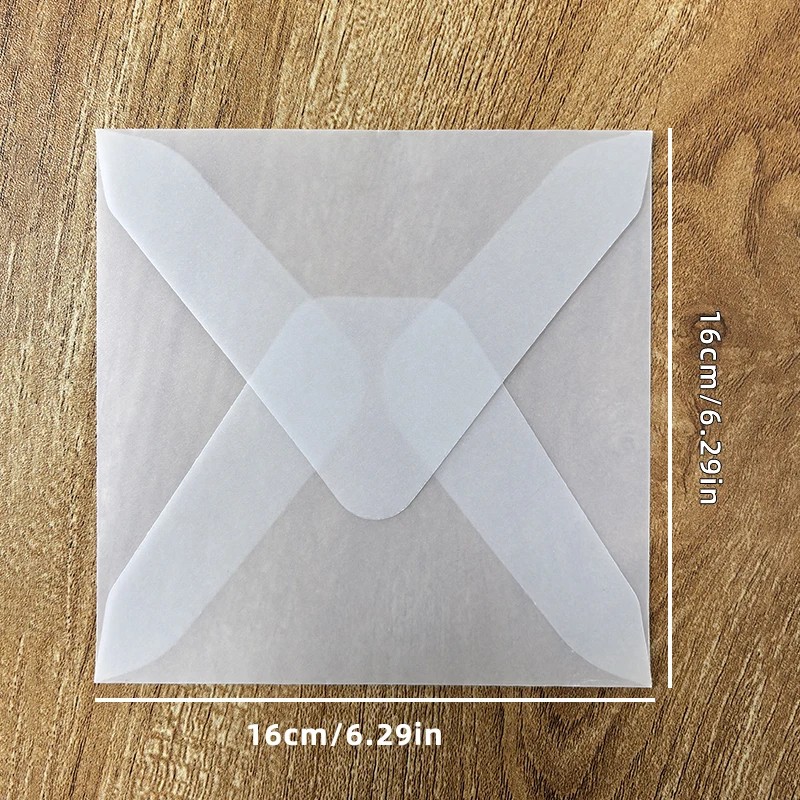 Set de 50 bucăți de plicuri transparente 16 x 16 cm hârtie semi-transparentă cu clapetă autocolantă pentru felicitări invitații