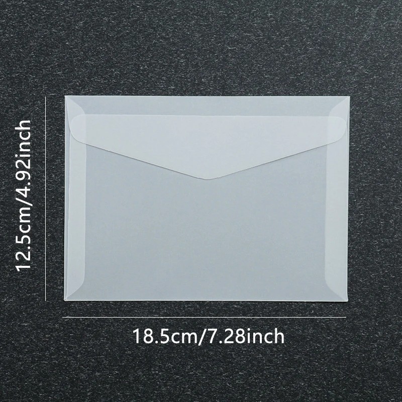 Pagina de start Pagina de start Casă Furnituri de birou Set de 50 de plicuri transparente 18,5 x 12,5 cm hârtie semitransparentă cu clapetă autocolantă plicuri pentru felicitări invitații