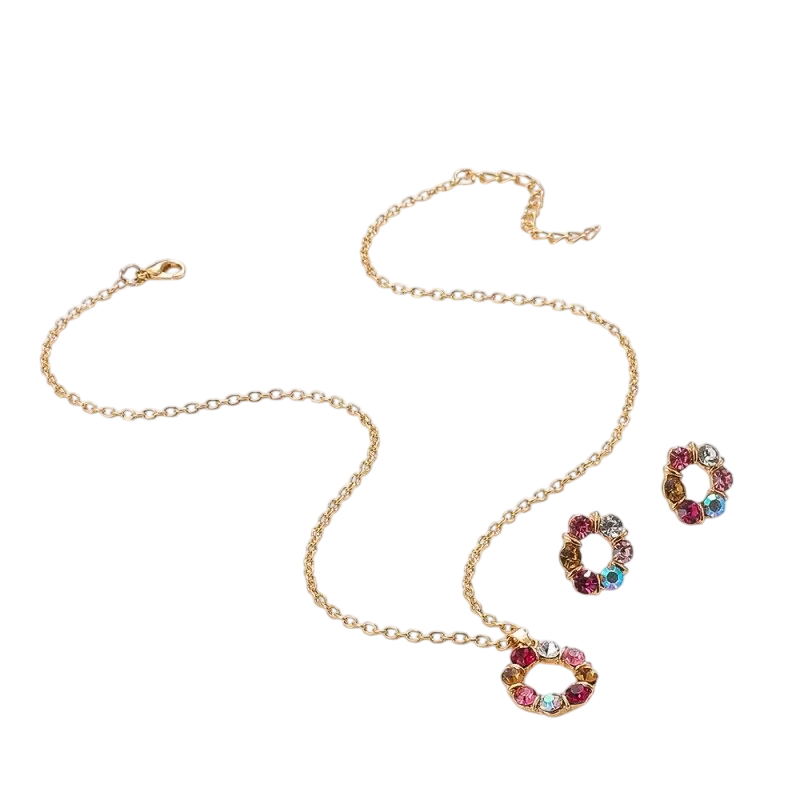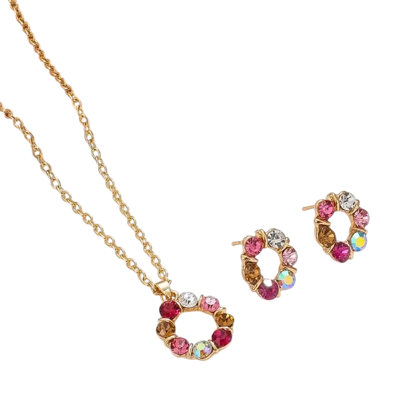Set elegant pentru femei, cu un design vitraj circular în nuanțe de aur, potrivit pentru ocazii festive și purtare zilnică. Descrierea completă