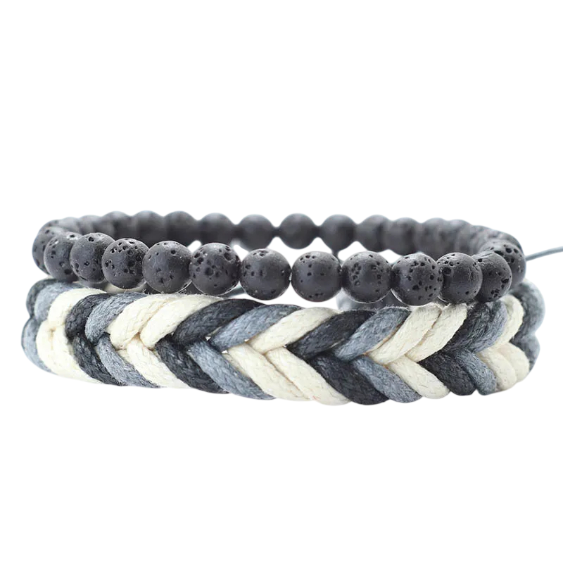 Aceast set este potrivit pentru bărbații care caută un accesoriu simplu, dar versatil. Posibilitatea de a combina două stiluri diferite permite adaptarea în funcție de ocazie. Materialul natural asigură un aspect atemporal, care se potrivește ușor cu diverse ținute. Designul ajustabil contribuie la confortul purtării pe parcursul zilei. Brățările pot fi purtate individual sau împreună pentru a crea un stil mai pronunțat.