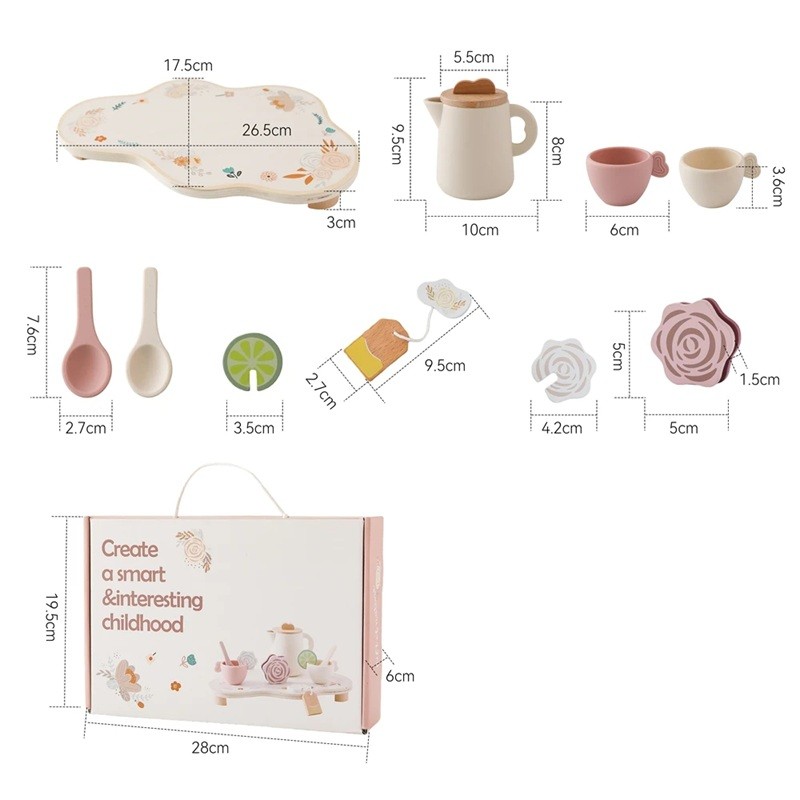 Această set de ceai Montessori din lemn pentru copii este alegerea ideală pentru micii iubitori de jocuri de gătit și servire. Copiii pot imita adulții în prepararea ceaiului, își pot dezvolta imaginația și învăța abilități sociale importante. Setul conține ceainic, două căni, tavă și două lingurițe, permițând copiilor să creeze situații realiste din viața de zi cu zi. Jucăria este potrivită atât pentru joacă independentă, cât și pentru momentele petrecute împreună cu prietenii sau părinții.