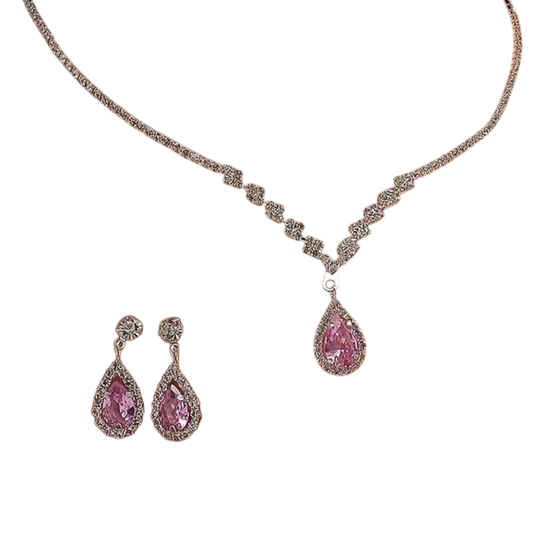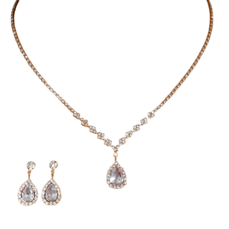 Set elegant în formă de picătură pentru nunți, banchete și petreceri cu pandantiv ajustabil și cercei delicati pentru un aspect sofisticat. Descrierea completă
