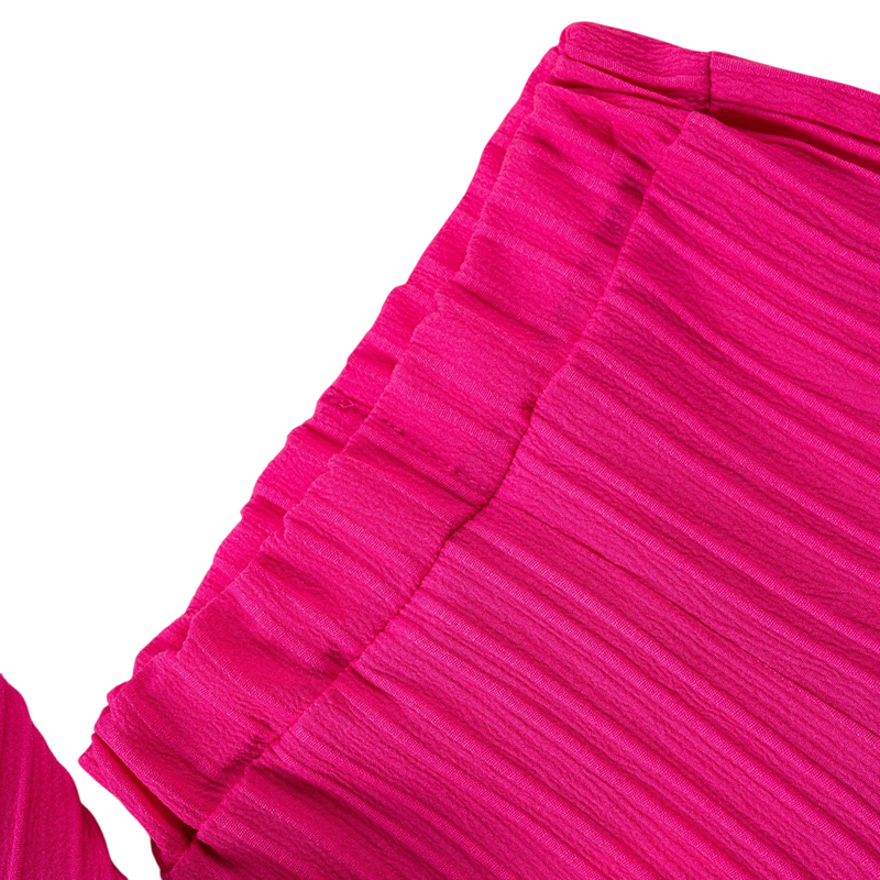 Aceast set de vară pentru fete este conceput cu accent pe lejeritate, confort și mișcare naturală în zilele călduroase. Combinația dintre topul fără mâneci și pantalonii scurți cu volane creează o ținută aerisită și asortată, potrivită pentru purtarea zilnică. Designul simplu, dar elegant, are un aspect delicat și feminin. Croiala este adaptată pentru a nu restricționa mișcarea și a fi plăcută chiar și la purtarea pe parcursul întregii zile. Setul se îmbracă ușor și este o alegere ideală pentru vară.