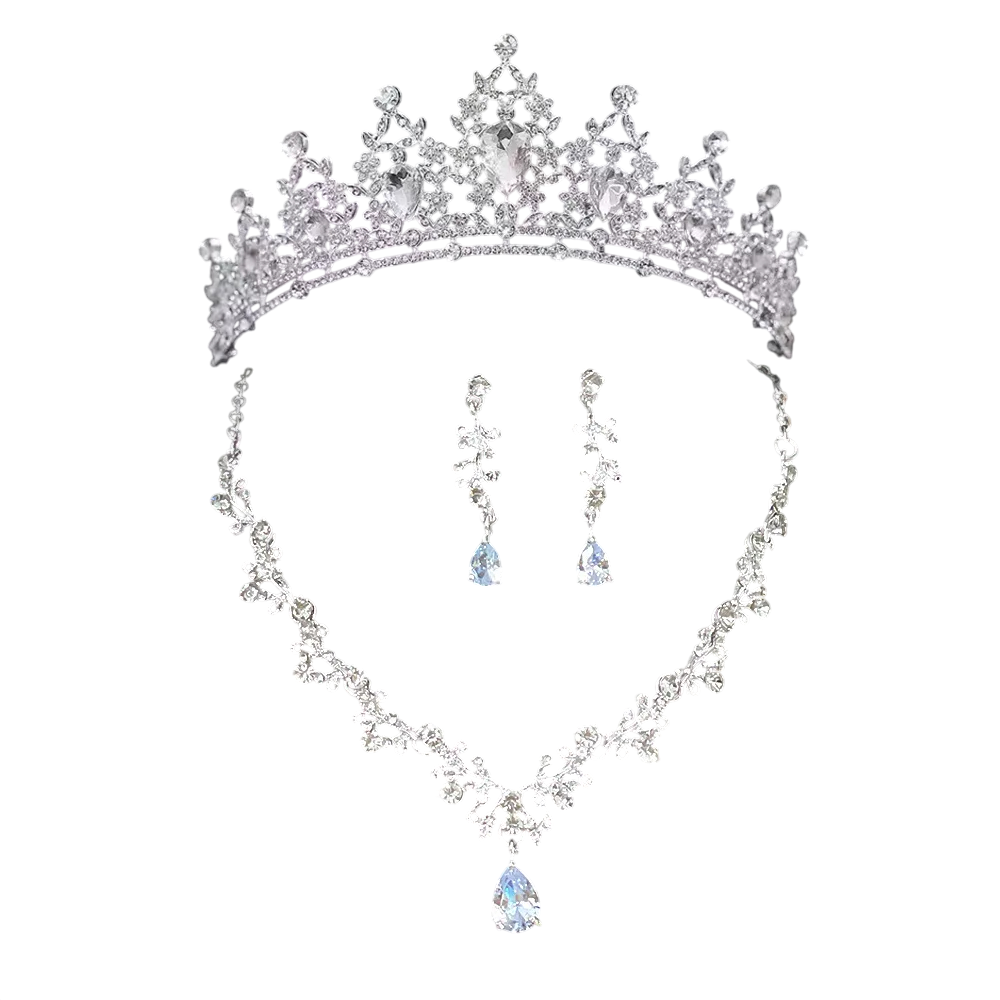 - Conținutul pachetului: 1× tiara, 1× colier, 1× pereche de cercei