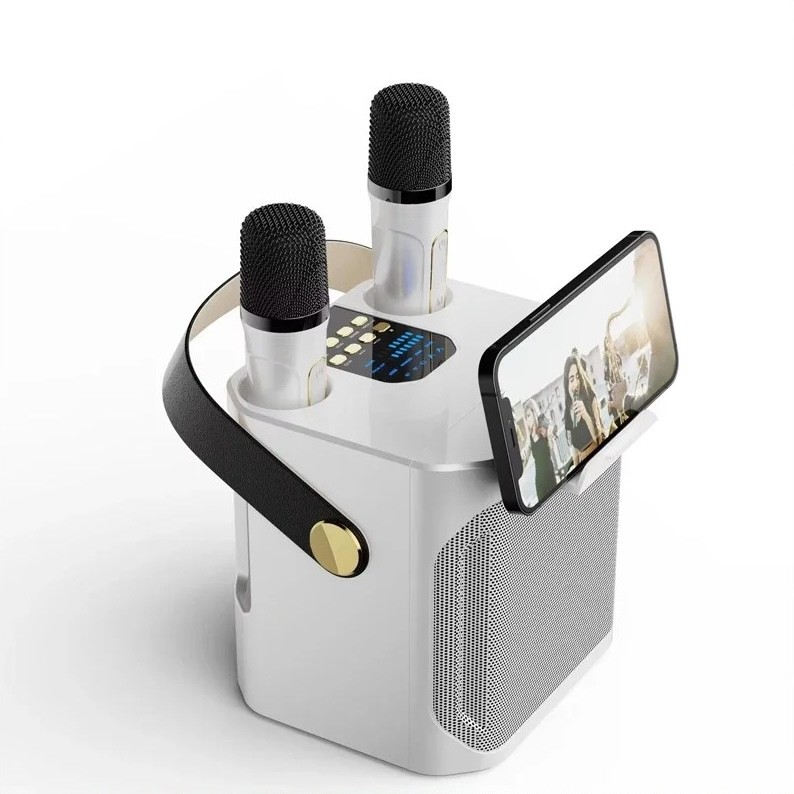 Setul include 2 microfoane fără fir, fiecare cu propriul control și baterie separată. Microfoanele suportă efecte vocale, cum ar fi vocea masculină, vocea feminină, vocea de copil sau efecte speciale. Controlul volumului acompaniamentului și al ecoului este clar și permite ajustări rapide ale sunetului. Difuzorul și microfoanele se încarcă prin intermediul unui conector modern USB-C.