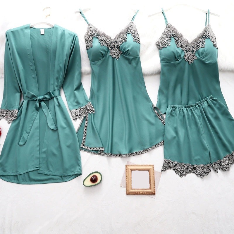 Conținutul pachetului: 1x cămașă de noapte, 1x top, 1x pantaloni scurți, 1x halat de baie