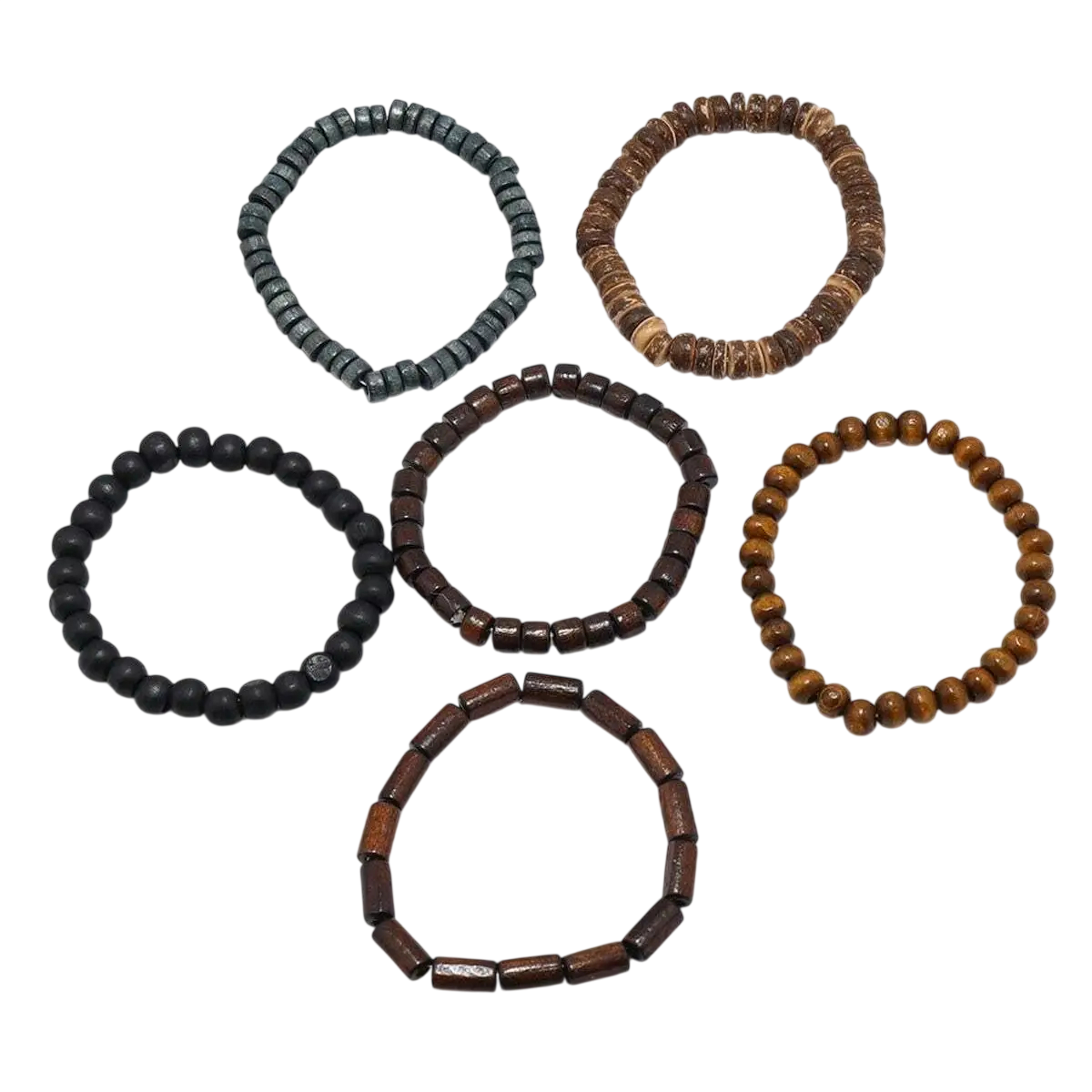 Seta de brățări pentru bărbați din mărgele 6 buc Mărgele din lemn Brățări stilate pentru bărbați Design simplu Fabricate manual Cadou pentru bărbați