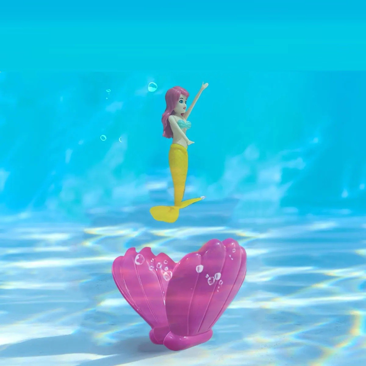 Această sirenă în scoică aduce copiilor o distracție acvatică originală bazată pe un principiu simplu, dar foarte eficient de deschidere automată. Păpușa are dimensiunile 12,5 × 7,5 × 2,8 cm și este concepută pentru a pluti bine și pentru a atrage atenția prin mișcarea sa delicată la ieșirea din apă. Scoica este disponibilă în două variante – transparentă albastră și transparentă roz, iar culoarea scoicii este stabilită ferm la alegerea clientului. Totuși, păpușa este trimisă aleatoriu în funcție de ediția de producție actuală, ceea ce adaugă un element de surpriză jucăriei.