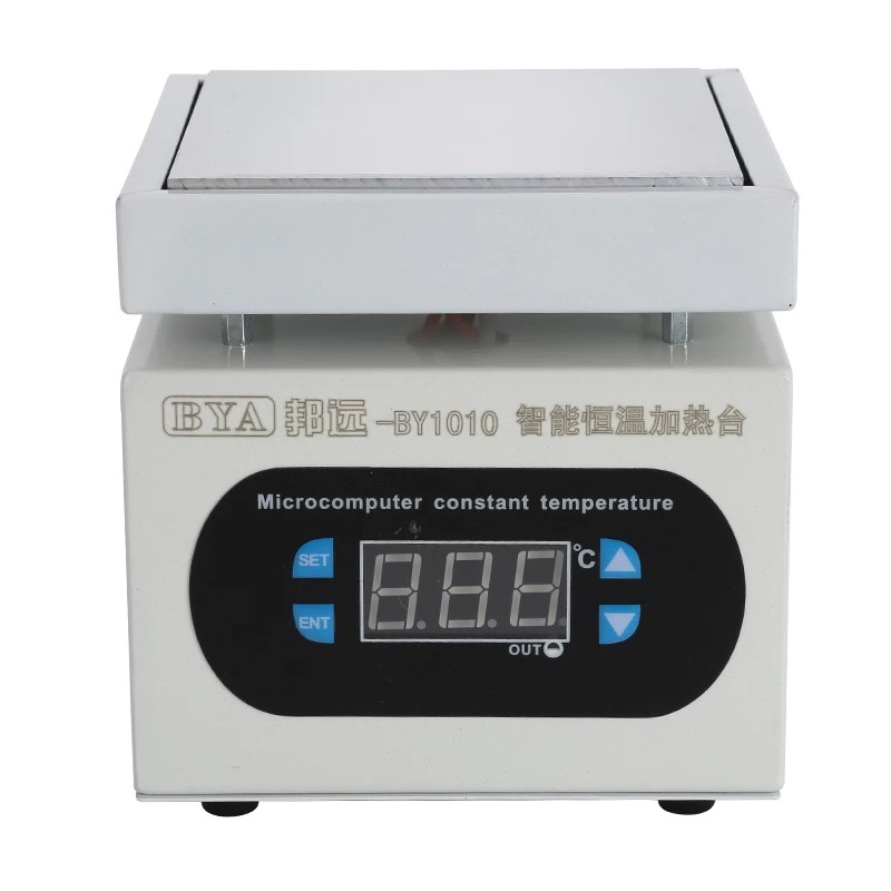 Această stație de încălzire profesională BY1010 este destinată pentru încălzirea precisă și stabilă a plăcilor de circuit imprimat, modulelor electronice, ecranelor și altor componente. Oferă un interval de temperatură de la 0 la 400 °C, ceea ce permite o utilizare variată, de la preîncălzirea la sudare până la experimente de laborator. Datorită controlului cu microprocesor, temperatura este menținută cu o mare precizie și poate fi ajustată cu ușurință prin intermediul unui ecran LED clar. Suprafața de lucru de 100 × 100 mm oferă suficient spațiu chiar și pentru piese mai mari, în timp ce dimensiunile compacte ale corpului asigură o amplasare ușoară pe masa de lucru.